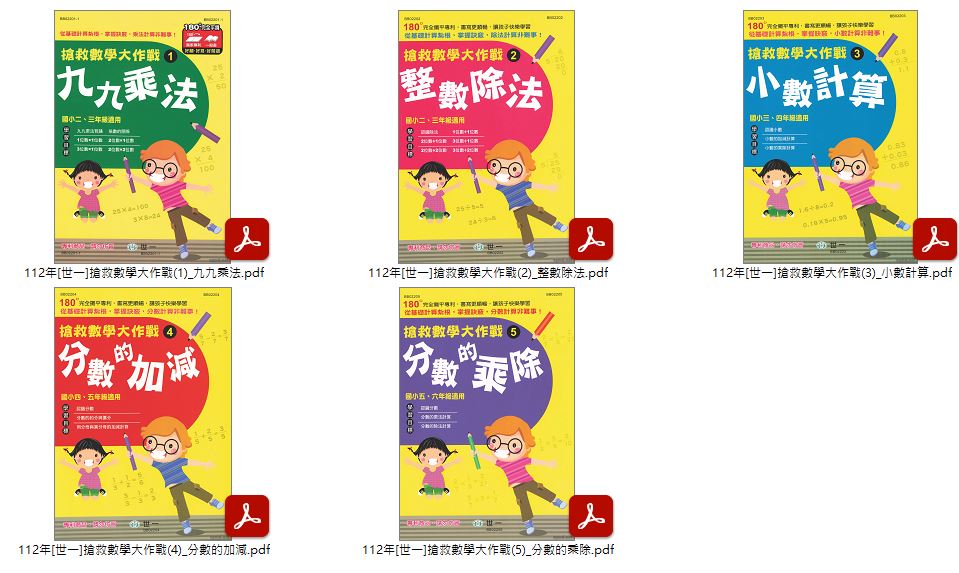 112年國小輔助教材 [光田]最新基礎數學 + [光田]數學演算推理能力高手 + [世一]搶救數學大作戰 教材光碟