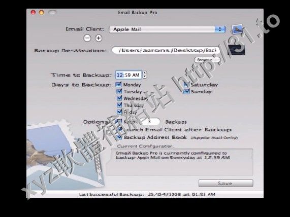 • Email Backup Pro v2.5.3 MacOSX 英文正式版(能夠備份、管理和監控所有在局域網裡通過電子郵件軟體收發的郵件軟體)