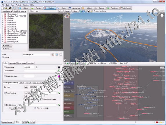 整個世界,或者導入真實的世界地形數據。你可以使用Terragen創建最真實可信的世界,包括天
